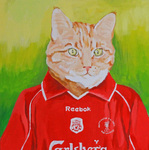2014Liverpool (en Everton) zijn de katten van vrienden. Ze heten naar de voetbalteams en de opdrachtgevers wilden graag dat ze in het shirt van het geboortejaar geschilderd zouden worden.